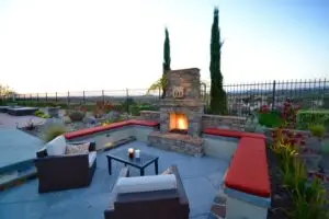 Custom design fireplace with surrounding ‘smart’ landscaping.